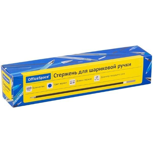 Стержень шариковый OfficeSpace. Толщина линии письма - 0.5 мм. Цвет чернил - синий. Длина стержня - 142 мм.